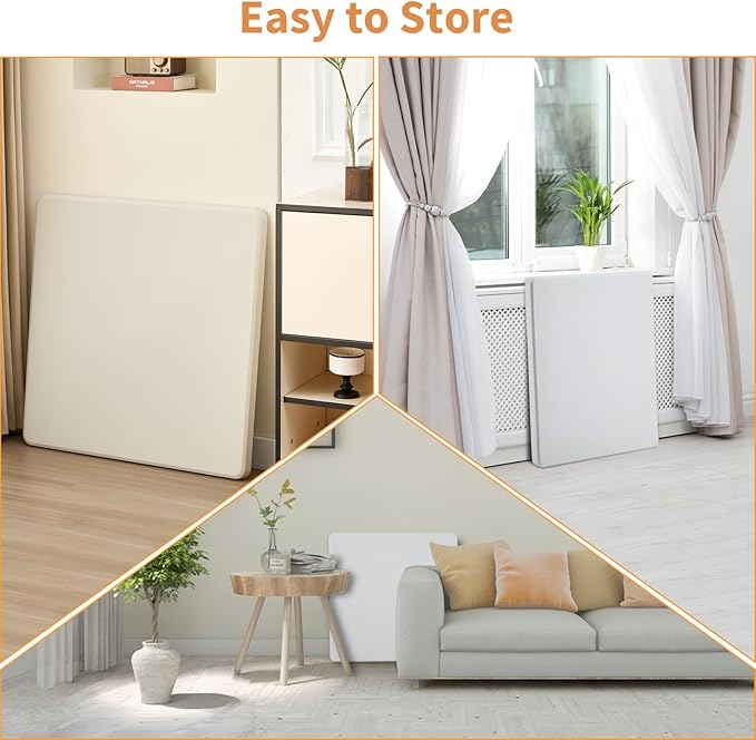 • 【Sturdy Plastic Construction】: Crafted with premium materials including environmentally friendly vinyl padding, HDPE material, and resin surfaces, our plastic folding table ensures long-lasting durability. The surfaces of the foldable card table are waterproof, scratch-resistant, and impact-resistant, making them easy to clean and ideal for indoor or outdoor use.