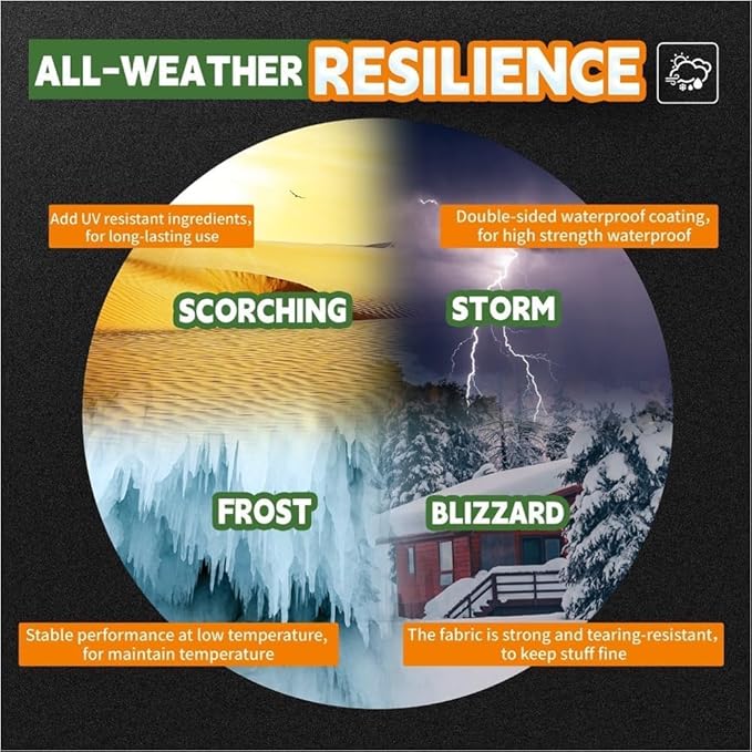 • 【UV RESISTANT TARP +WEATHER PROOF】This tarp can provide a UV protection in the sun, It protect your objects from extreme weather conditions,Mother Nature can be unpredictable, but you can be prepared, so be sure to protect your outdoor equipment and supplies with this weatherproof Heavy Duty Tarp