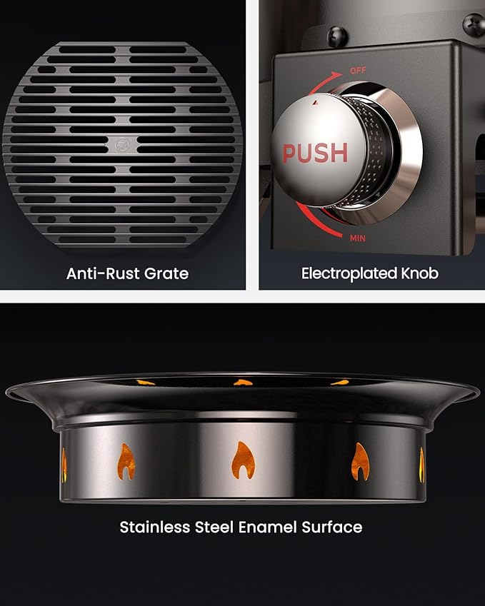 • CSA-Approved Fire Pit: Our CSA-approved fire pit can be used during wood campfire bans. The Ciays fire pit is equipped with flameout protection that shuts off the fire pit if the flame is extinguished by strong wind, rain, or due to lack of oxygen, helping to avoid further flame risks.