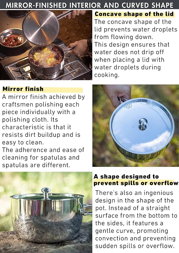• 【A shape designed to prevent spills or overflow】There's also an ingenious design in the shape of the pot. Instead of a straight surface from the bottom to the sides, it features a gentle curve, promoting convection and preventing sudden spills or overflow.