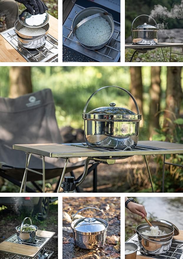 CAMPINGMOON 3.0L Cooking Pot 3-ply Stainless Steel IH Compatible Rice Cooker CC-21