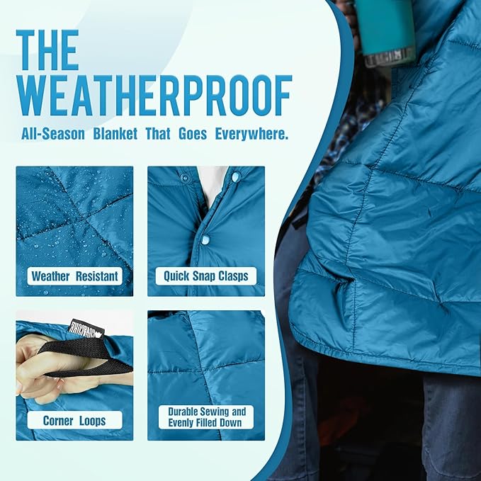 • 【High-quality & Durable】Our blanket is thick synthetic insulation that's great for three-season use. The blankets have 100% nylon shell which features a Rip-stop mesh, basically its parachute material. It can provides protection from the elements, making our blankets weather and stain resistant.