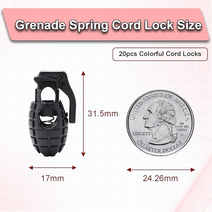 • 【Spring Cord Locks】Pack of 20 Assorted Plastic Spring Cord Locks Toggles,Outsize:31.5x17mm, Hole Diameter:5mm. Please pay attention to the size of the product image so that the size is not appropriate,Rope is not included!