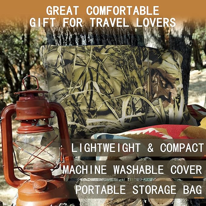 • Soft and Comfortable: Our camping pillow is filled with high-quality memory foam shreds on the inside and a soft suede pillowcase on the outside. Compared with cotton and inflatable pillows, the memory foam fits your neck and head better, reducing pressure and providing better support and comfort. Whether you're on a plane, at the beach, in the car, RV, or tent, this memory foam travel pillow will give you a better sleep experience.