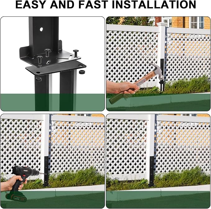 • Package includes TOPZEA set of 2 fence post anchor kits, are easy and effective solution for fence repair and stabilization, comes with screws, hex tool and drill bit for a quick repairing, is also valuable addition to your home repair tools kit.
