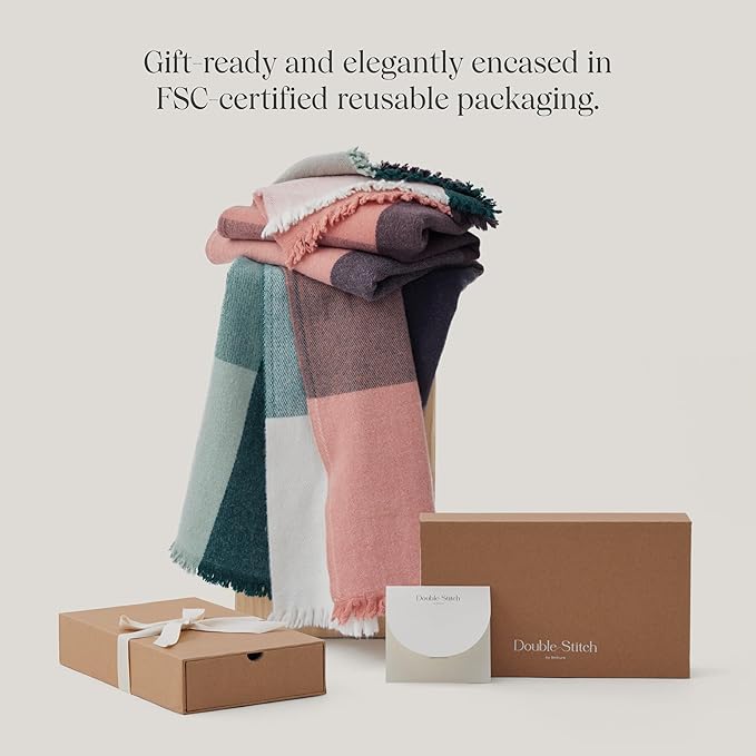 Double Stitch Alpaca Wool Throw Blanket - Warm, Soft Blanket for Couch, Luxury & Decorative Fleece Throw, Fall Plaid, Gift for Mother's Day, House Warming, 50" x 60", Sunset Glow