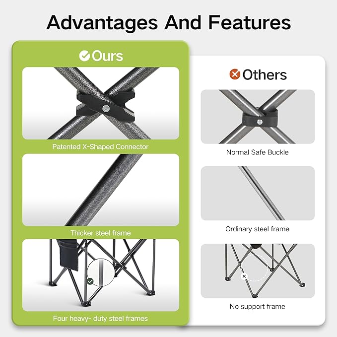• 【Easy to Setup and Carry】No need to install, sets and folds in seconds, saving your space and time. It is lightweight and easy to carry, foldable chairs suitable for outdoor travel, camping & hiking