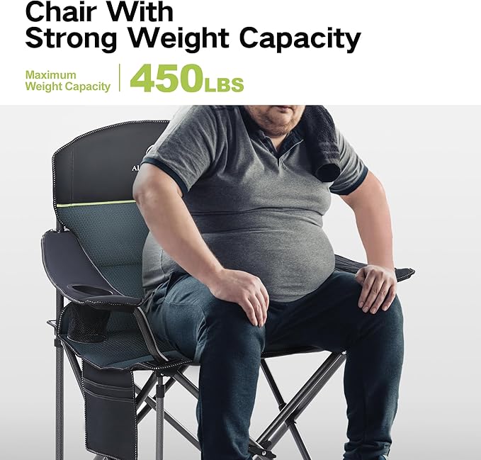 • 【Oversized Quad Chairs】The size for Oversized Camping Folding Chair is 25.20" L x 39.37" W x 39.37"H, 9.05" x 38.58" when Folded, and weighs only 13.2 lbs. Support up to 450 lbs, perfect for heavy people. Your best companion for hiking, camping, hunting, traveling, fishing, picnic and other outdoor activities.
