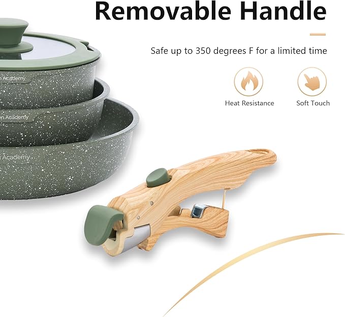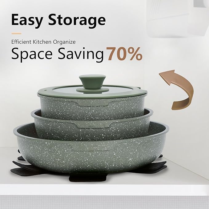 • ๐Œ๐š๐ฑ๐ข๐ฆ๐ข๐ณ๐ž ๐Š๐ข๐ญ๐œ๐ก๐ž๐ง ๐’๐ฉ๐š๐œ๐ž: Our pots and pans set non stick with detachable handles saves up to 70% more space, perfect for easy storage in cabinets or RVs. Keep your kitchen clutter-free and organized