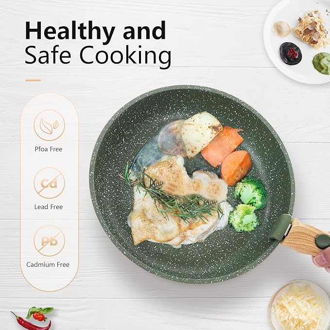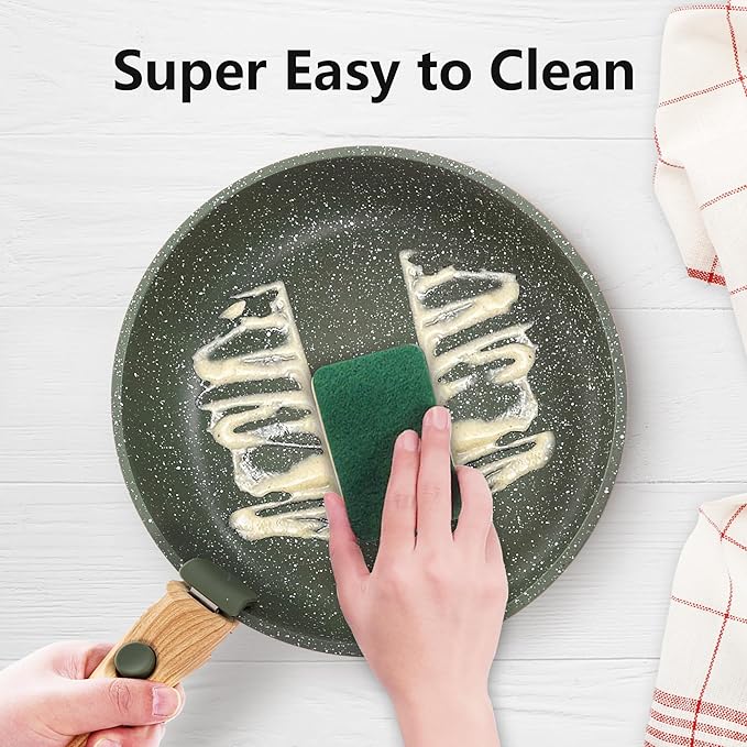 • ๐—˜๐—ฎ๐˜€๐˜† ๐˜๐—ผ ๐—–๐—น๐—ฒ๐—ฎ๐—ป: The nonstick coating makes our pots and pans set non stick a breeze to clean. Simply wipe it off with water or a paper towel, saving you time and effort in the kitchen