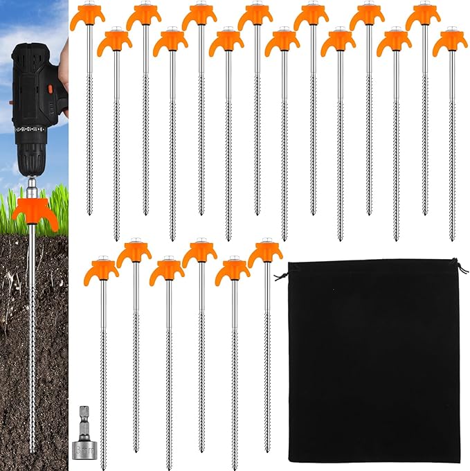• Strong and Secure: our metal stakes offer enough strength under windy conditions and are suitable for use in dirt, grass, soils and sand; Pointed items are included, it is recommended to wear tool gloves to avoid injury when using, and please keep it away from kids; Tips: not suitable for soil with solid rocks or heavy roots, as this may cause damage to the anchor or overload of the cordless drill