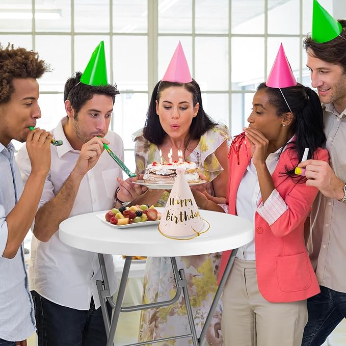 • SUITABLE SIZE: Our high top table's unfolded dimensions are 27.5" L x 27.5" W x 43.3" H; folded dimensions are 27.5" L x 27.5" D; weighs 15.4 lbs. The foldable and detachable portable design makes this round cocktail table easy to store and transport