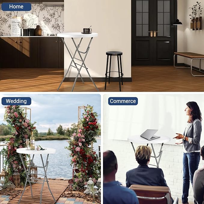 • MULTI-SCENE APPLICATION: This tall cocktail table is suitable for parties, weddings, terraces, restaurants, yards, award ceremonies, family dinners, etc. Whether indoors or outdoors, this high table has a simple beauty that is practical and elegant