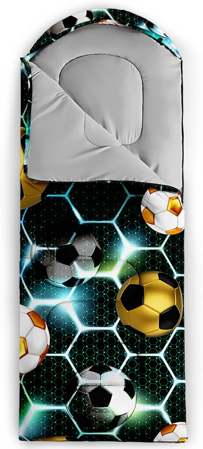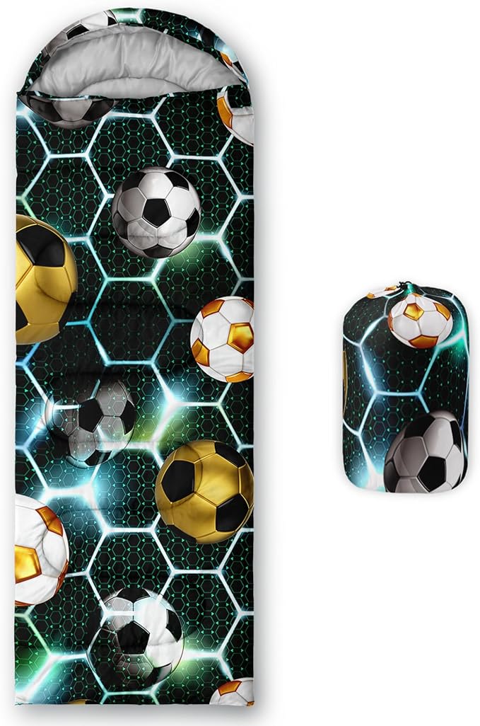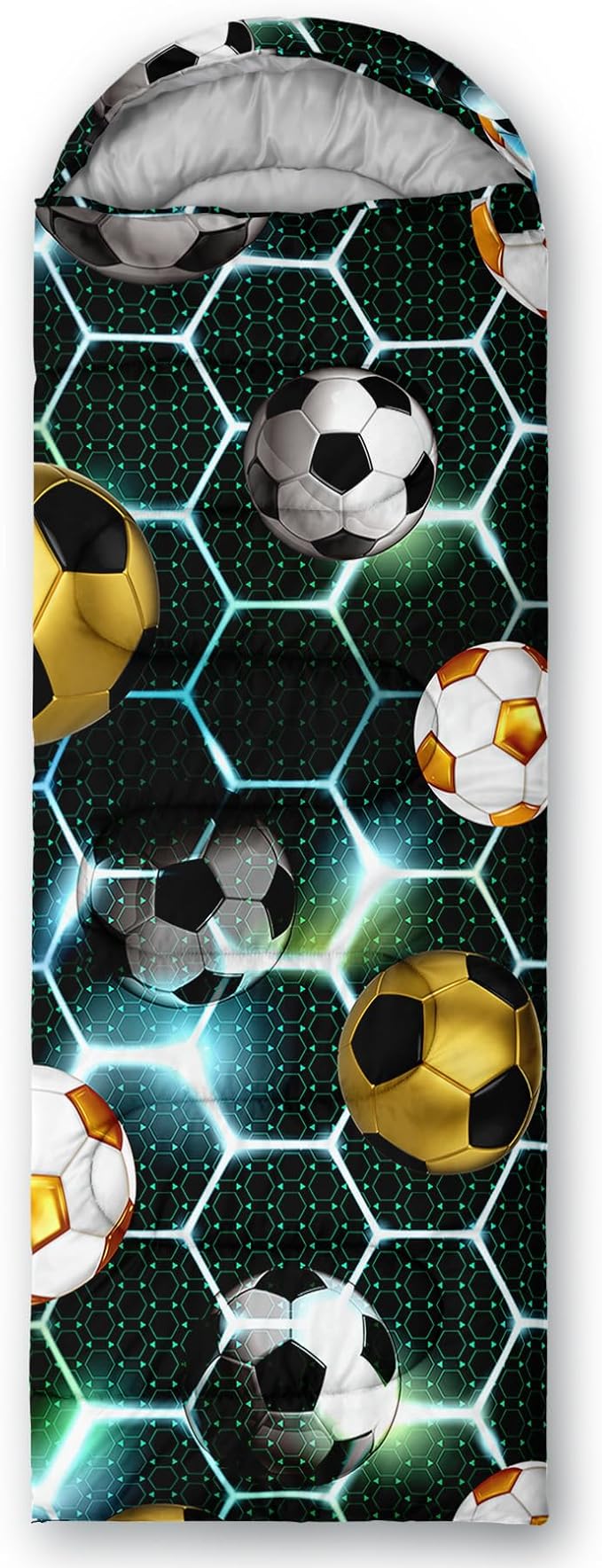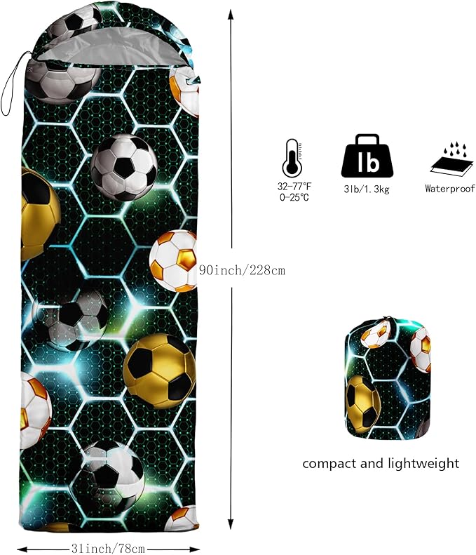 • 【Fits For 3 Seasons】: Size - 31 by 90 inches (W x D). Our Soccer Ball Sports sleeping bag can be used in 3 seasons with a design temperature of 32℉-77℉(0℃-25℃). These Sleeping bags also have a weather resistant waterproof design to keep you warm and prevent you from any dampness.