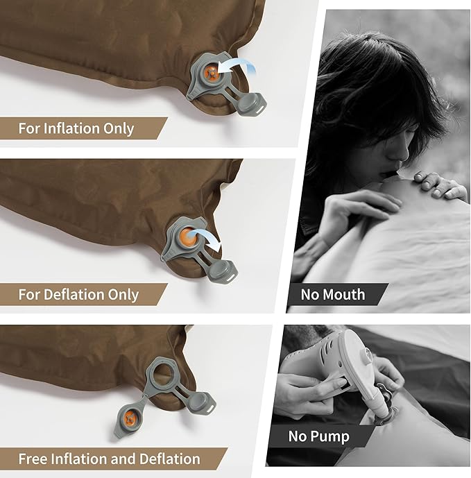 • UNIQUE TWO-WAY INFLATION VALVE: Two-way inflation valve, only one layer can be opened to inflate and prevent air leakage, and both layers can be opened for quick deflation. The unique design helps you to adjust the softness of the mattress by yourself. Note that the first time you use the mattress, the air intake will be slow, the self-inflation usually only reach 80% of the level, the last need to make up a little bit of air. Do not over-inflate