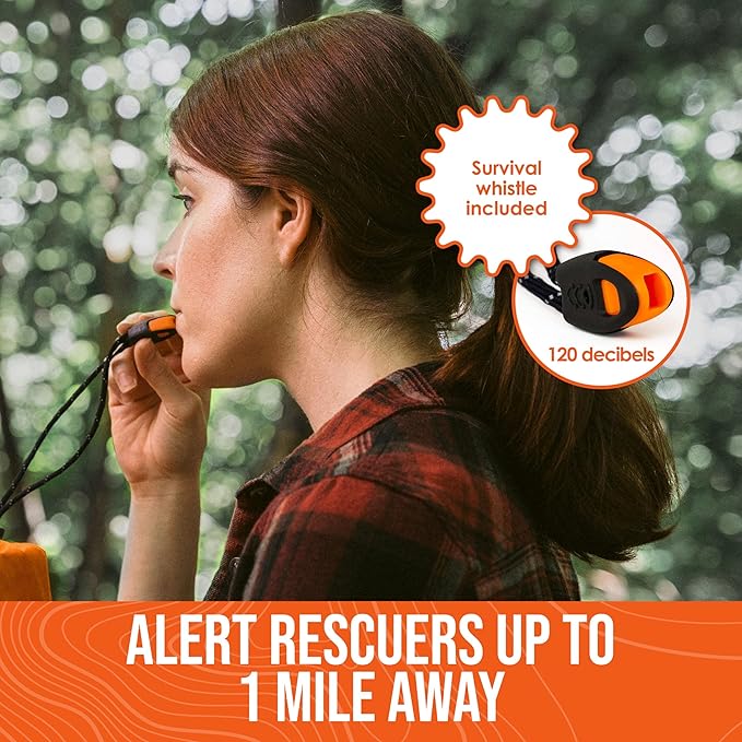• Incredibly Compact - At 4.1oz, this lightweight thermal sleeping bag bivy won’t weigh you down. It packs down nicely in the 4” x 3” stuff sack and includes a 120-decibel whistle to alert rescuers up to 1 mile away. Perfect for any bivvy or bugout bag.