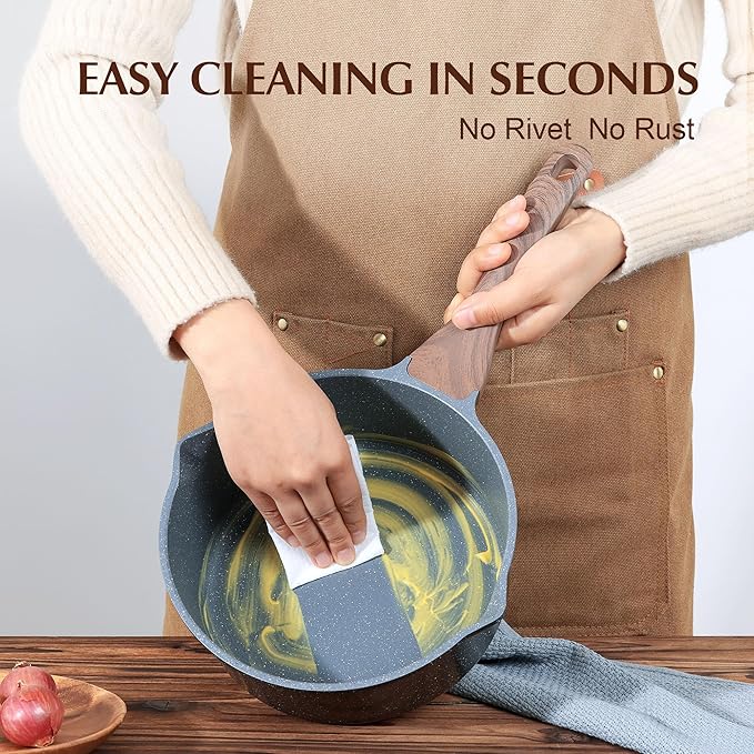 • Easy To Clean - Nonstick and no rivets, this sauce pot is super easy to clean. Simply wipe it over with a sponge and warm soapy water. Make your daily food intake easier to make.