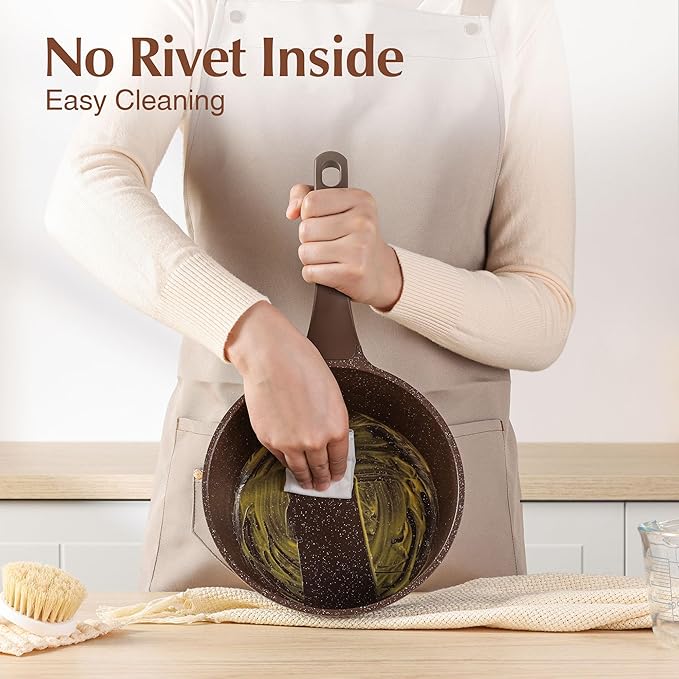 • New Technology of Composite Coating - Improved harder granite,10X enhanced for long-lasting nonstick performance. Free of Intentionally Added PFOA, smokeless, safe & healthy. Cooking with little oil for healthy diet.