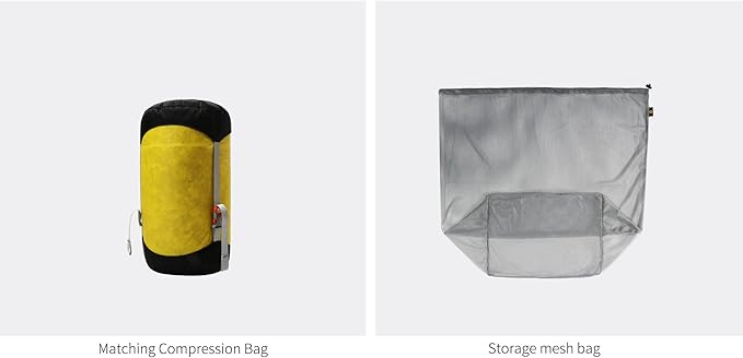 • We present a compression bag and a loose mesh bag. After receiving the package, simply take the sleeping bag out of the compression bag and put it into the loose mesh storage, it can quickly recover its fluffy state .