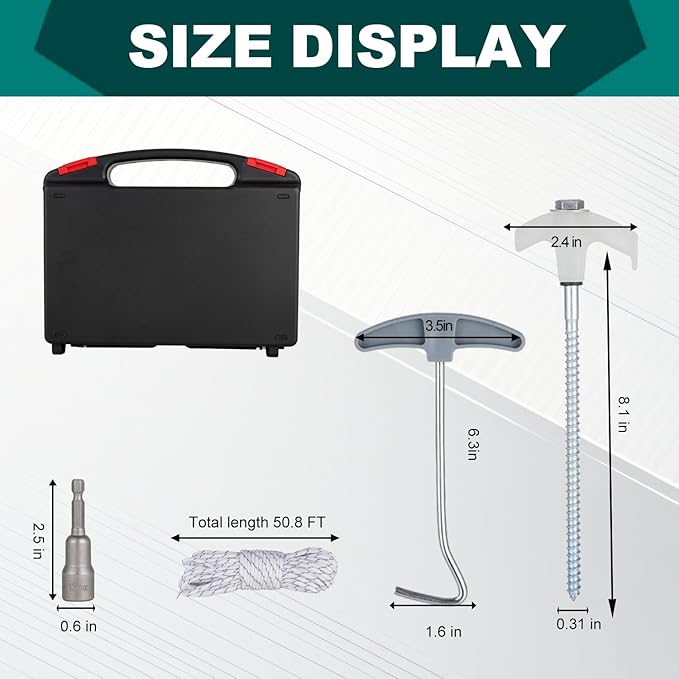 • ACCESSORIES: easy to store and sturdy carrying case, 13mm hex bit, 50FT tent rope.