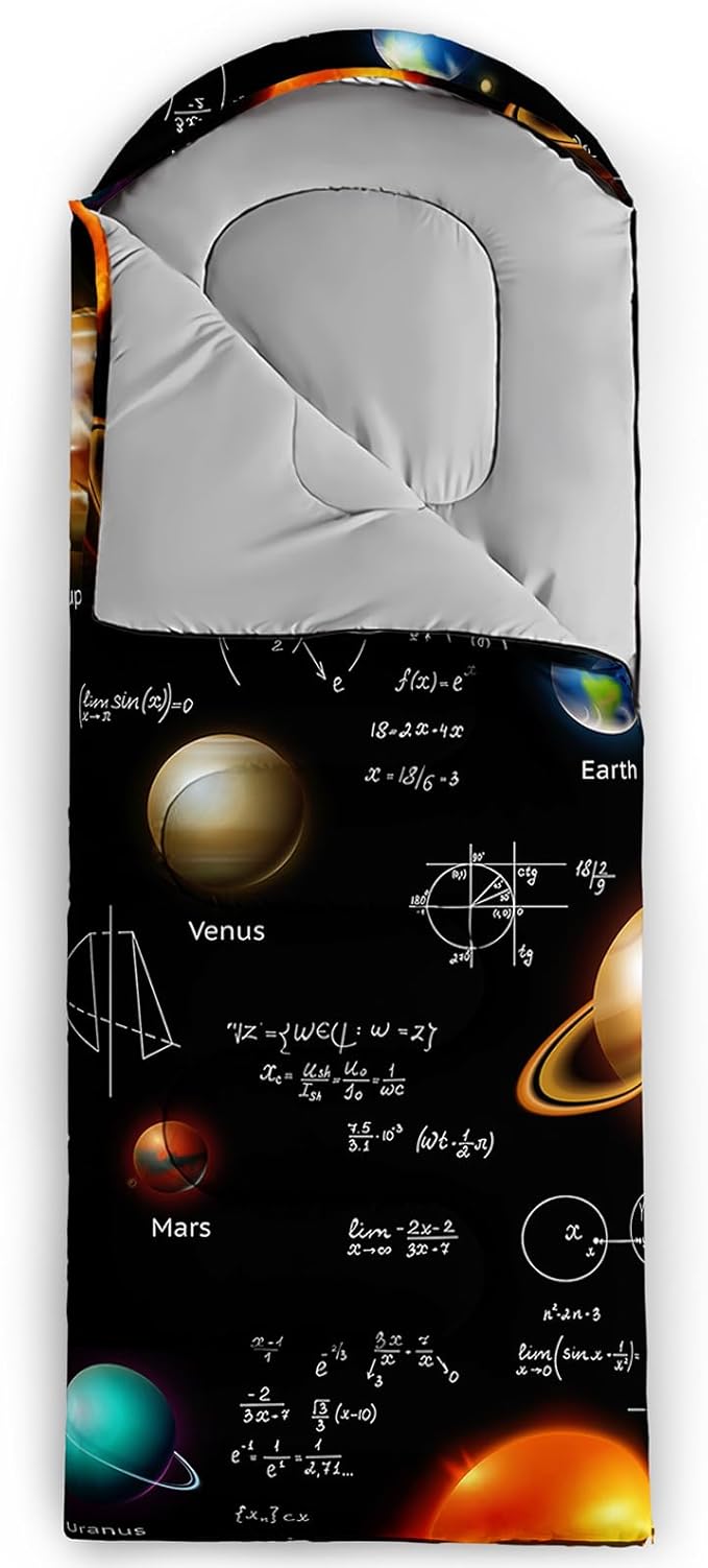 AILONEN Outer Space Astronaut Camping Sleeping Bags,Lightweight & Waterproof,3 Season Warm & Cool Weather,Cartoon Sleeping Bags for Kids,Boys Girls Travelling,Outdoors