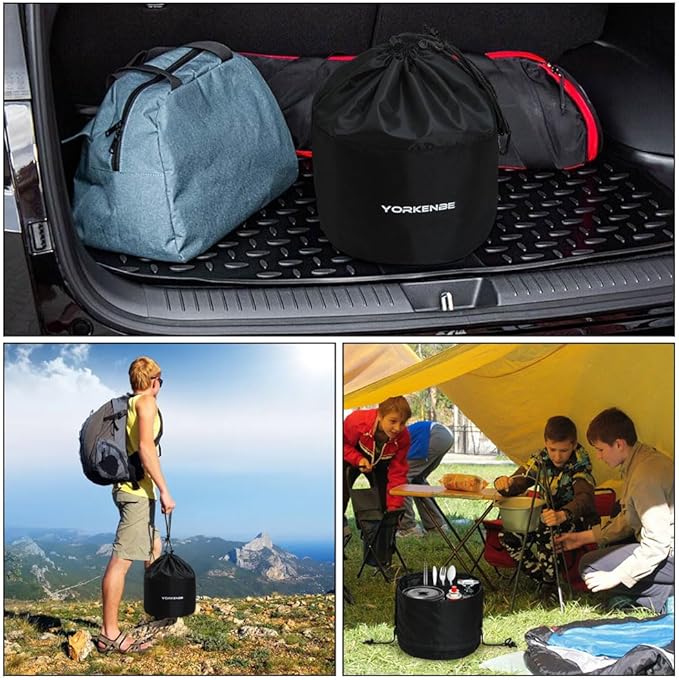 • 【 Water Resistant and Long-lasting】Made from strong and sturdy 1680D heavy duty oxford cloth exterior, inner with waterproof layer, the cooking set carry bag resists water damage even after prolonged use, and easy to clean.The capacity camping kitchen bag stays strong and won't crash during transport, makes you feel secure wherever you go.