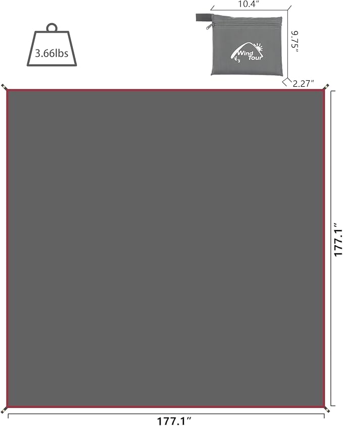 Wind Tour Portable Multifunctional Outdoor Camping Tarp Groundsheet Footprint Lightweight Floor and Ground Tarps for Camping Hiking with Carry Bag (177" x 177")