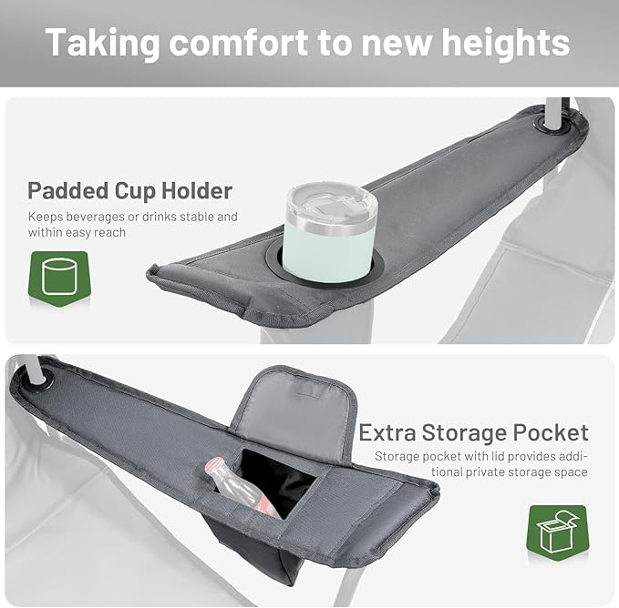• PORTABLE DESIGN: The large camping chair is easy to set up and fold in seconds, ideal for camping, beach, picnics, and more; suitable for both indoor and outdoor use