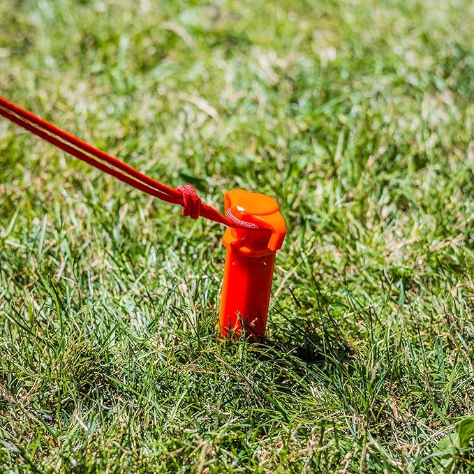 • UNIBODY CONSTRUCTION: Lightweight but heavy duty, these ABS plastic material tent stakes feature single body construction, increasing the ground anchors integrity, durability and longevity, as well as making installation and removal more efficient