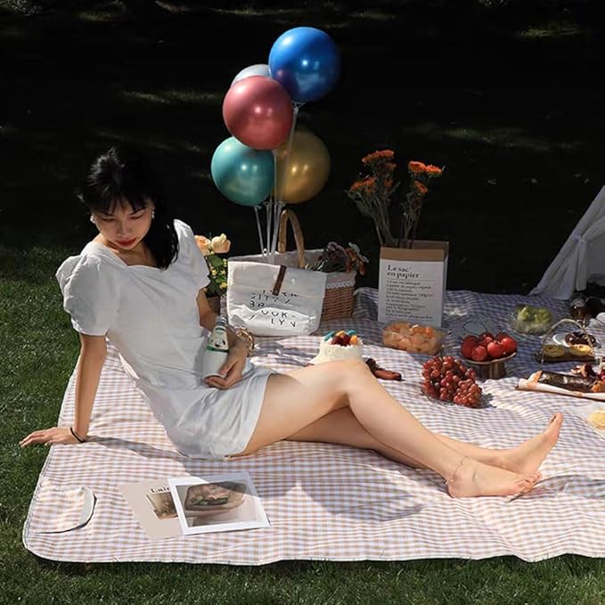 • Premium Material: Our mat is made of high-quality oxford fabric, non-toxic, light-weight and comfortable. Attractive Design For Photos, Cute gingham blanket with white and tan checkers looks great in photos, on grass or sand.It is your best companion for daily life and outdoor life! Also a gift to your family.