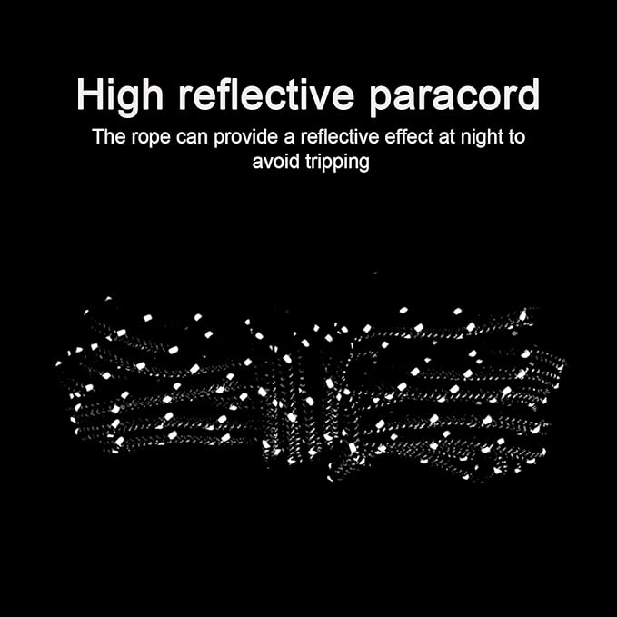 • Guy Rope 4mm Reflective Cord Guy Line Tent Guide Rope with Aluminum Adjuster 13 Feet 8 Pack for Tent Tarp Outdoor Packaging.