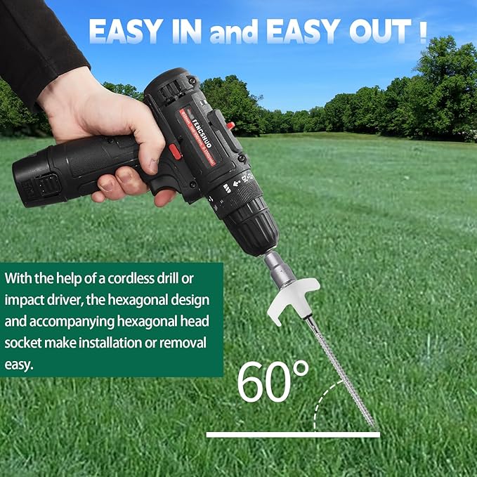 • Easy In And Easy Out: With the help of a cordless drill or impact driver, the hexagonal design and accompanying hexagonal head socket make installation or removal easy. LISMODZ camping stakes are easy to drive in and haven't budged! Very easy to put in rocky soil
