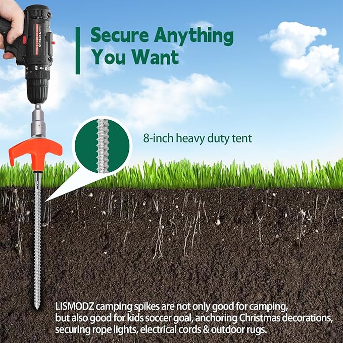 • Secure Anything You Want: LISMODZ camping spikes are not only good for camping, but also good for kids soccer goal, anchoring Christmas decorations, securing rope lights, electrical cords & outdoor rugs.