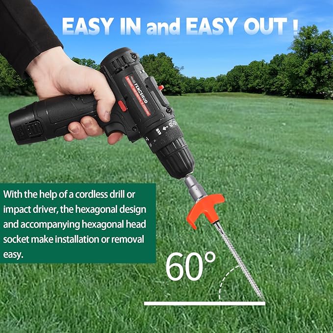 • Easy In And Easy Out: With the help of a cordless drill or impact driver, the hexagonal design and accompanying hexagonal head socket make installation or removal easy. LISMODZ camping stakes are easy to drive in and haven't budged! Very easy to put in rocky soil.
