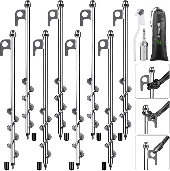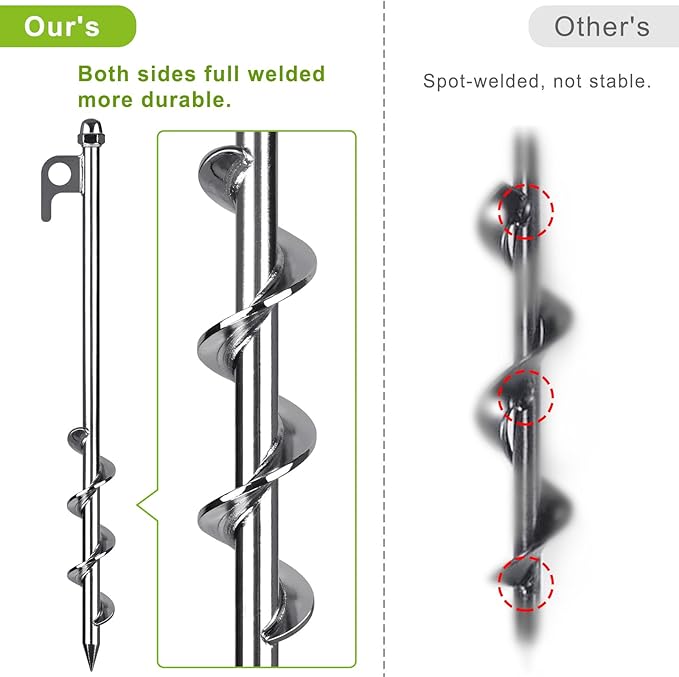 • 【Easy to Install and Remove】You can easily screw these spiral anchor into the ground with a drill and screw them out again when you don’t need them. You can install them in a few minutes, saving your time and effort