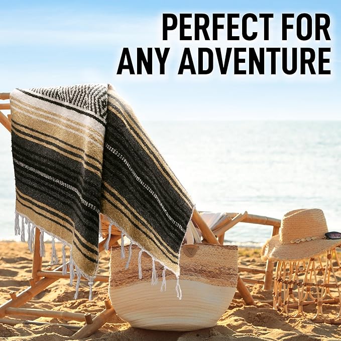 • VERSATILE HANDWOVEN BLANKETS: These serape blankets stay true to their heritage as each blanket is beautifully handcrafted with slight variations in size and weight as part of the timeless look and feel. Place it on the wall as part of your western home decor, or use it as a yoga blanket, car blanket, picnic blanket, saddle blanket, beach blanket, and much more.