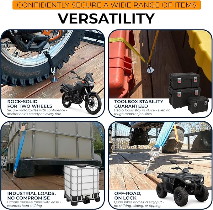 • COMPATIBILITY CHECK - If a pencil fits, our anchors will too, providing an effortless, no-bolt, no-screw installation for securing your cargo to any deck, trailer floor, or dock. Simply slide, twist, and secure!
