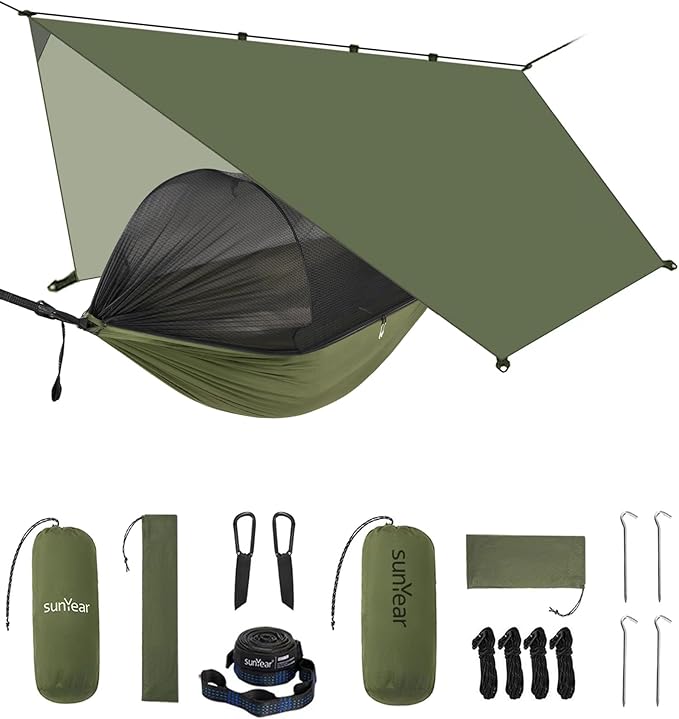 Sunyear Camping Hammock with Net - Double&Single Hammock with House-Like Net- Easy Setup & Pack, Lightweight & Portable, Perfect for Hiking, Backpacking, Outdoor Sleeping