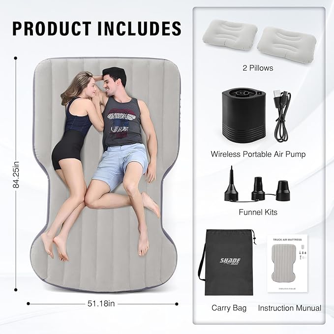 • 【Practical and Functional Air Mattress】:This comfortable inflatable car mattress pad not only can turns the trunk of your car into a comfortable bed and used as a resting bed whether you're in the car, but also can be a outdoors camping tents bed, perfect for adventure, travel, beach or at home.