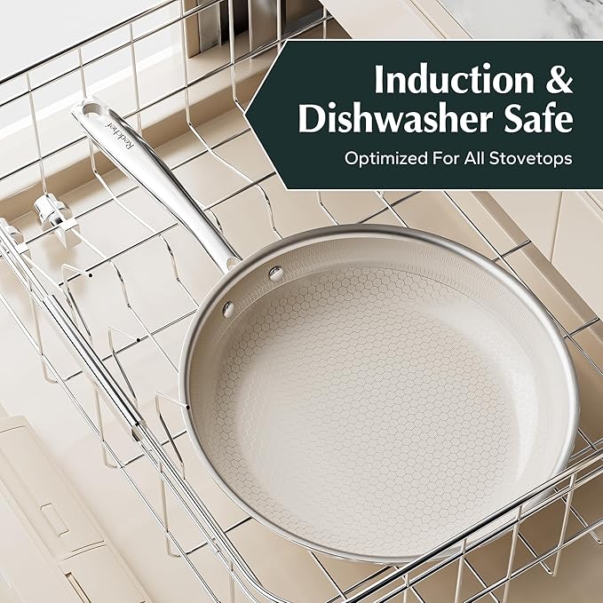 • SUPER NONSTICK: Redchef frying pans nonstick combines a honeycomb structure with a healthy ceramic coating for dual nonstick performance. Effortless food release and easy cleanup make cooking enjoyable. Perfect for frying eggs or sautéing vegetables with minimal oil