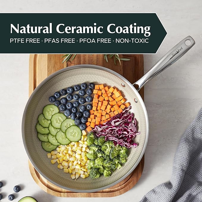 • HYBIRD COATING: Redchef's hybird non stick frying pans features an exclusive, stable, and healthy coating. Free from PTFE, PFOA, PFAS, lead, and cadmium, these frying pans ensures no harmful substances leach into your food. Enjoy peace of mind with Redchef's health-focused design