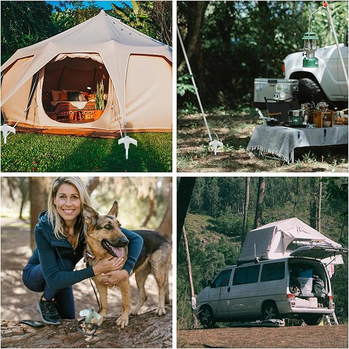 • Widely used: These screw-in ground anchors are suitable for most types of terrain, including sand, soil, and even hard rocky ground. Perfect for camping, backpacking, hiking or other outdoor activities. Whether you're looking to secure your tent, awning, pop up, canopy, gazebo or even to secure your dog leash, these heavy-duty stakes have you covered