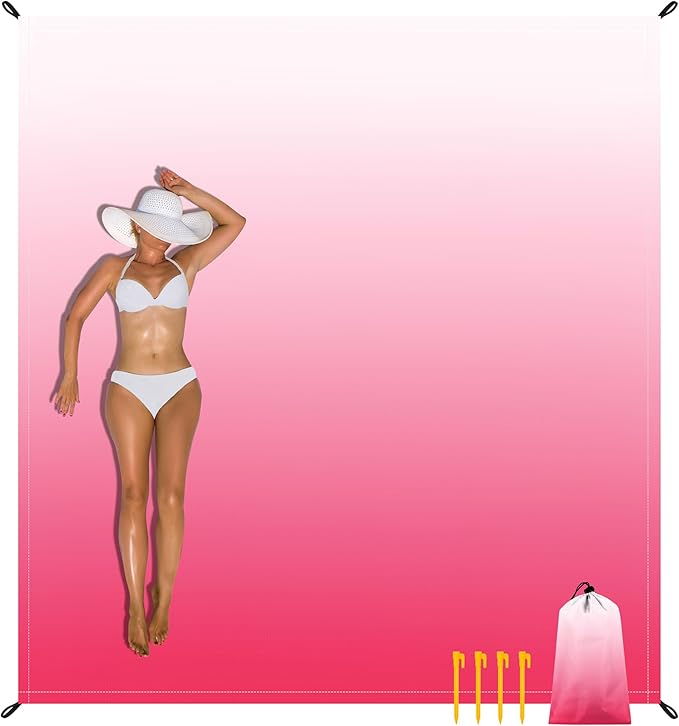 • Oversized Beach Mat: These 110''×118'' oversized foldable blankets is large enough for up to ten adults sitting and eight adults laying down. Vibrant pink gradient colors make the beach blanket easily visible, so you can quickly spot your spot from a distance. Great for beach vacations with family and friends!