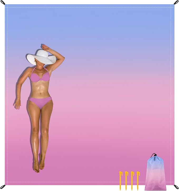 • Sand-free Beach Blanket: The nylon beach blanket is not only lightweight but feels good on the skin. Sand brushes and shakes off easily, the beach mat ensures a clean and comfortable surface for lounging.