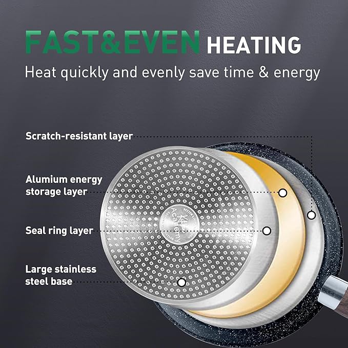 • 𝙃𝙚𝙖𝙡𝙩𝙝𝙮 𝘾𝙤𝙤𝙠𝙬𝙖𝙧𝙚 𝙎𝙚𝙩 𝙬𝙞𝙩𝙝 𝙏𝙤𝙭𝙞𝙣-𝙁𝙧𝙚𝙚: Made of natural granite, our kitchen cookware set is Teflon-free and guarantees no PFAS, PTFE, PFOA, lead, or cadmium.Ideal choice for safety-conscious families, especially those with babies