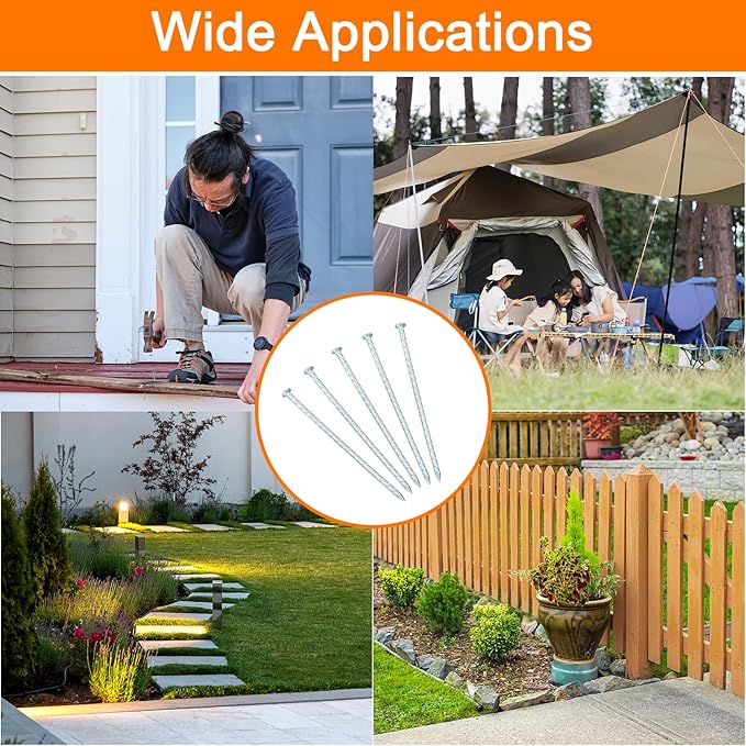 • Wide Applications: Spiral anchoring stake is suitable for landscape edges, paver edges, weed fabric, artificial turf fixing, wooden outdoor steps, wooden furniture, house construction, wooden pegs/nails, fixing ropes, tent camping, Fences, and other occasions.