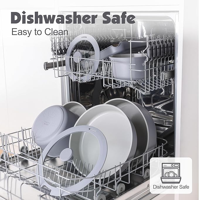 • Dishwasher Safe - Cleaning is a breeze. Professional wear-resistant design for the bottom of the pan set that prevents black residue even when used in the dishwasher.