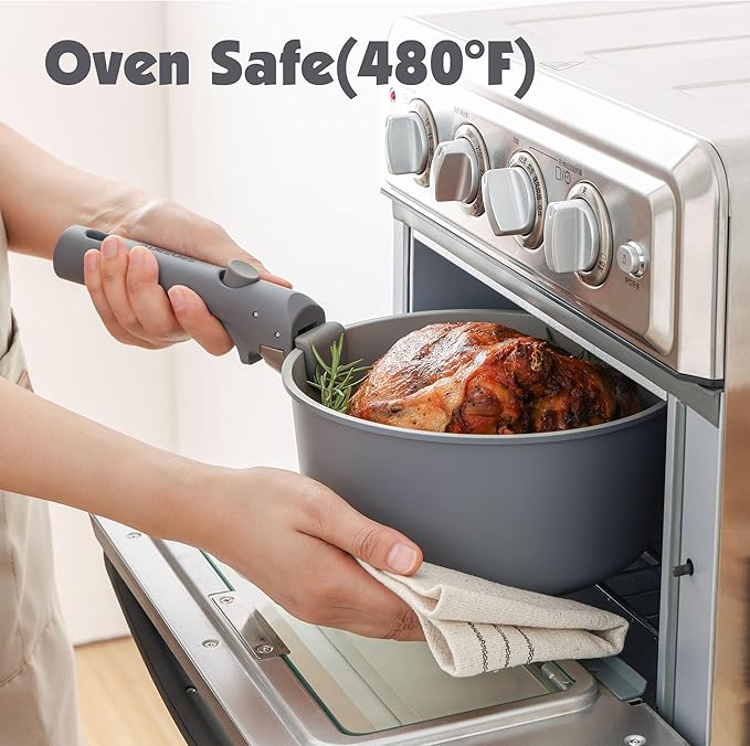 • Unique Removable Handle - Supports up to 22 pounds, the handle is professionally tested, fit for removable handle set pots and pans, no need to worry about wobbly handles.
