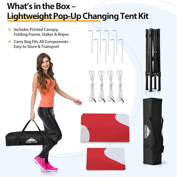 • LIGHTWEIGHT & ULTRA COMPACT: Changing Dressing Room has an ultra-compact, 3-part adjustable steel leg extension system. The Cabana is easy to store and carry, instantly folding down to just under 3 feet tall, 6.30x6.30x32.28in, 16x16x82 cm .