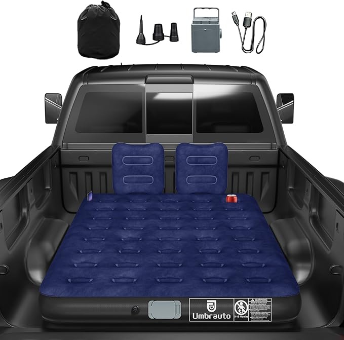 Umbrauto Air Mattress for 5.5-6.5 ft Short Bed Full-Size Trucks, Pickup Truck Airbed Mattress with Cordless Rechargeable Pump for Outdoor Travel